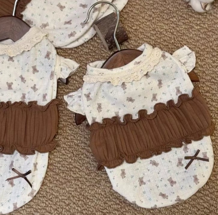 クマちゃん柄フリル付トップスで、あなたのスタイルにかわいらしさと楽しさをプラスしてみませんか?何かご不明な点やご質問がございましたら、ショップのお問い合わせからお気軽にお問い合わせください。