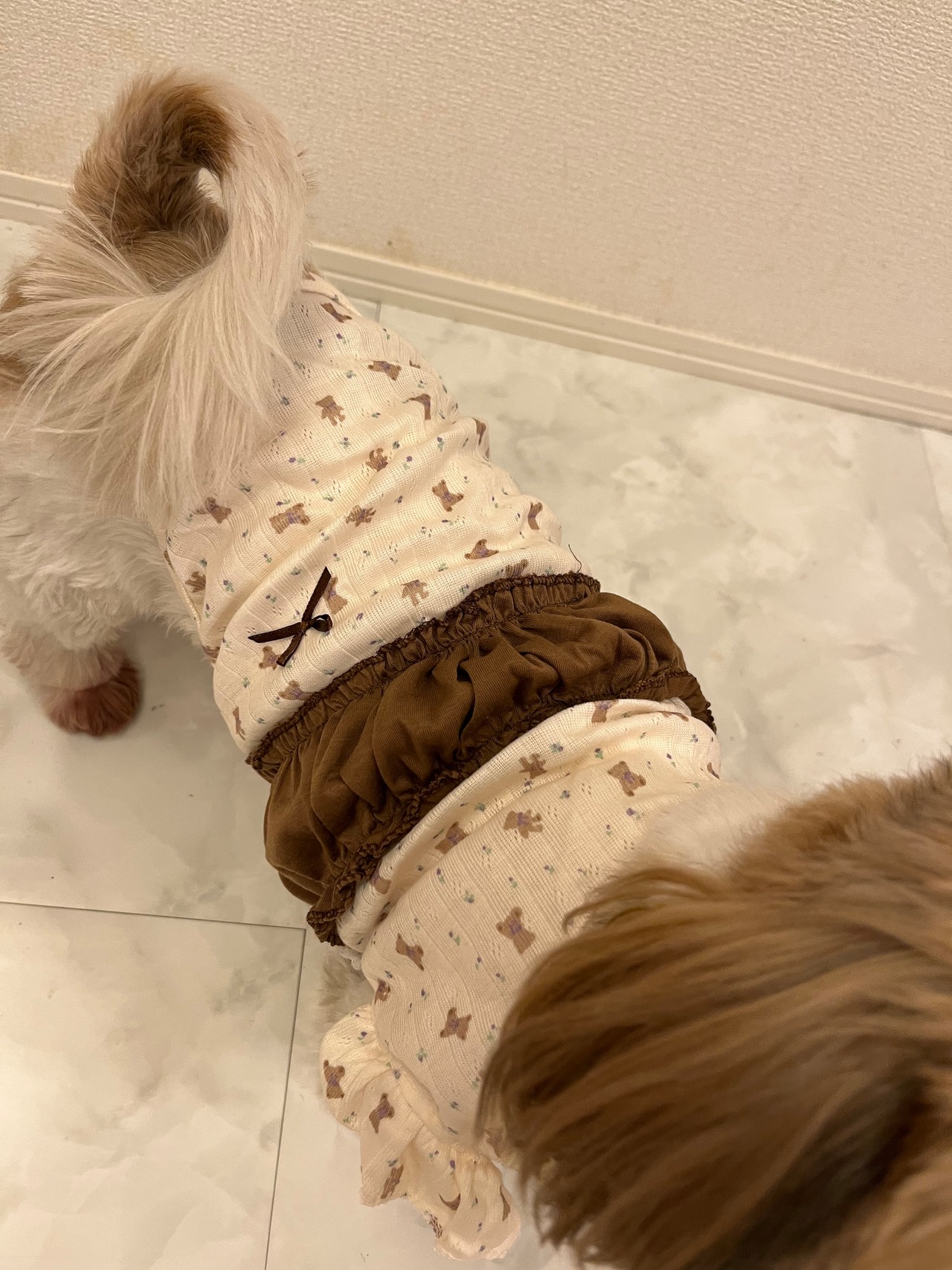 # クマちゃん柄フリル付トップス