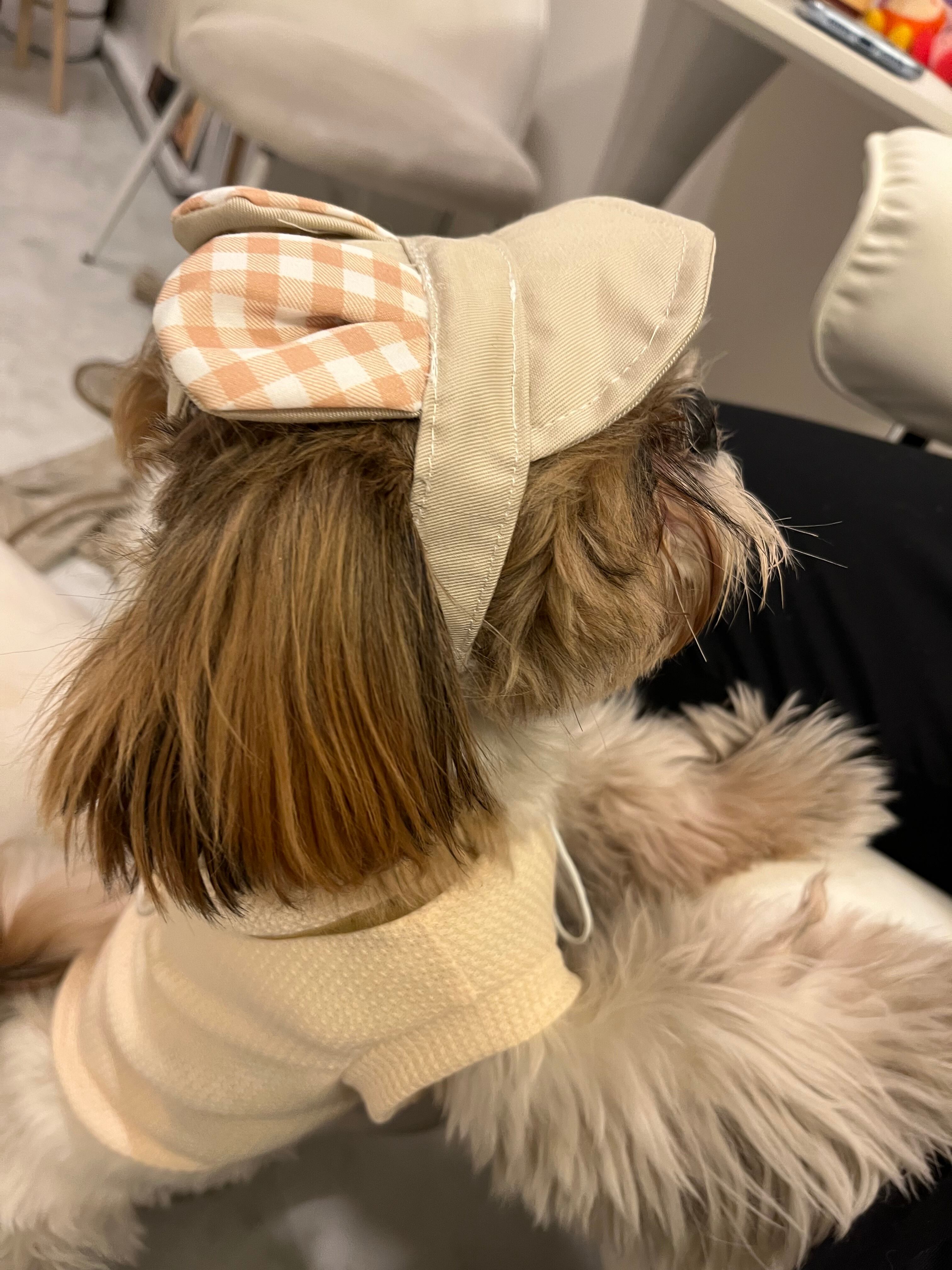 可愛らしさと遊び心が詰まったうさ耳チェック帽子が登場です!手触りの良い素材とトレンド感のあるチェック柄で、春夏のコーディネートにぴったりのアクセサリーです。愛犬とのお出かけをさらに楽しい時間にしてくれる一品です!